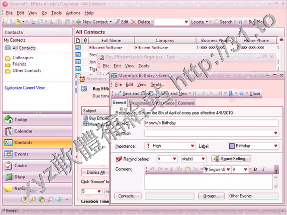 Efficient Software Efficient Ladys Organizer Pro v1.05 Build.16 英文正式版(個人資訊管理系統軟體)