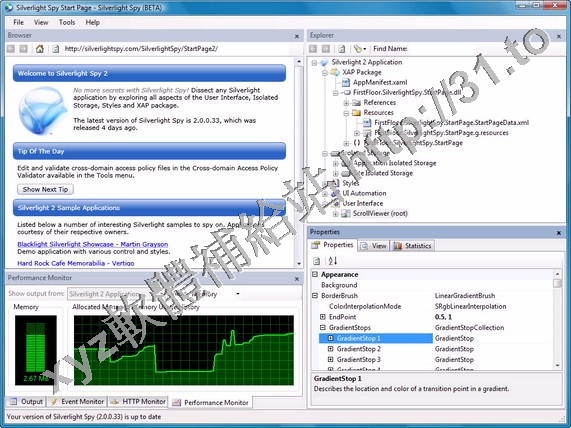 Silverlight Spy是一個免費的.NET 3.5工具,用來對顯示Silverlight 2內容的網頁