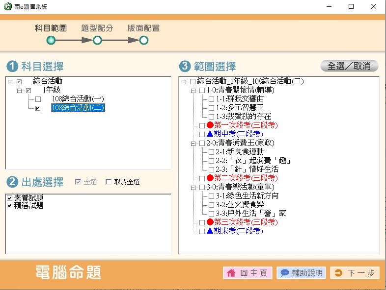 108學年下學期 國中命題光碟 南一版 綜合活動(108課綱) 1年級 題庫光碟