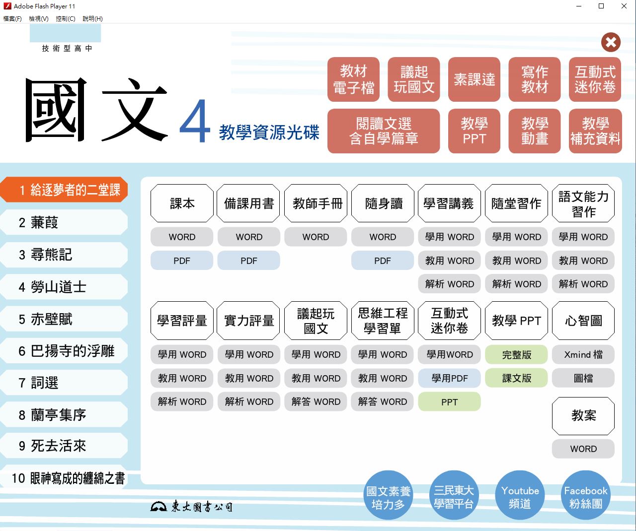 111學年下學期 技術高中 三民東大版 國文科 2年級 教學光碟
