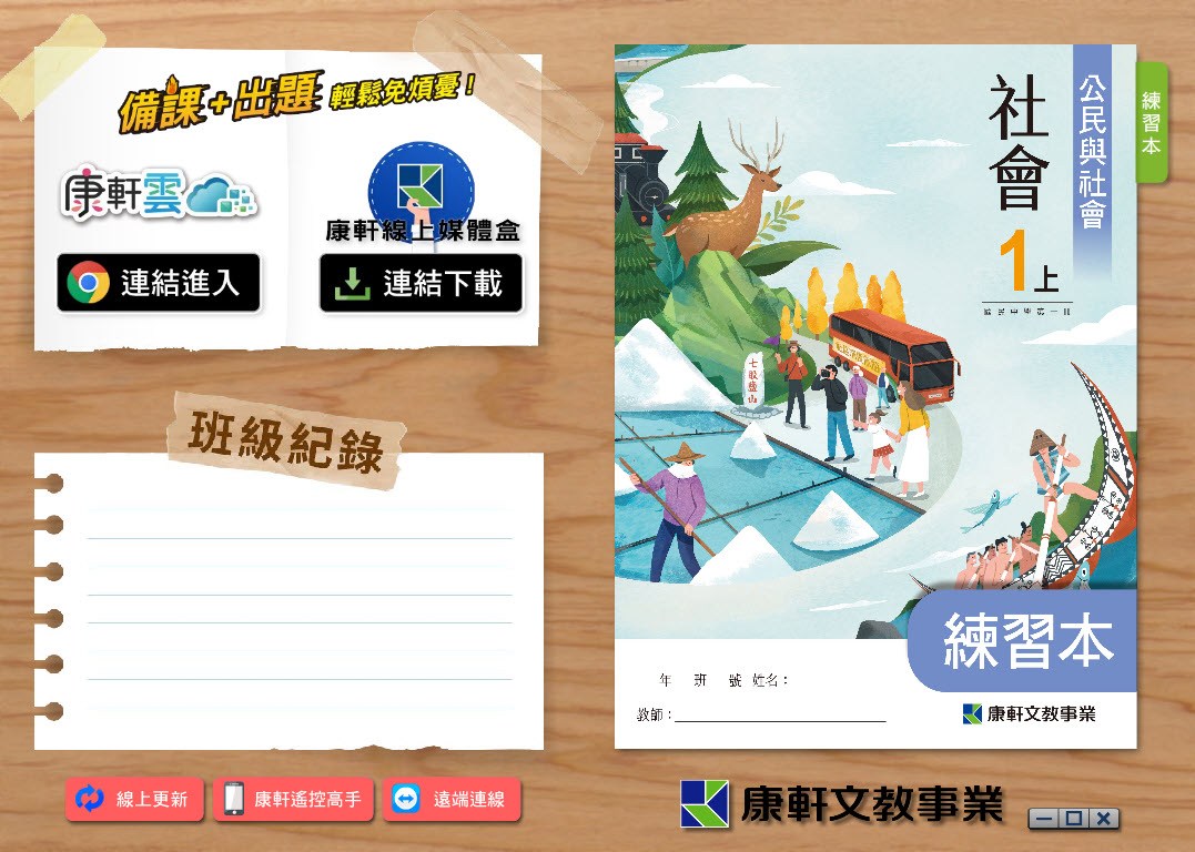 112學年上學期 國中 康軒版 公民 練習本電子書 1年級 教學光碟
