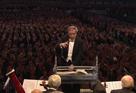 在場十萬名愛樂者終身難忘的音樂會。這場音樂會實況也立即在全球數十個國家實況或