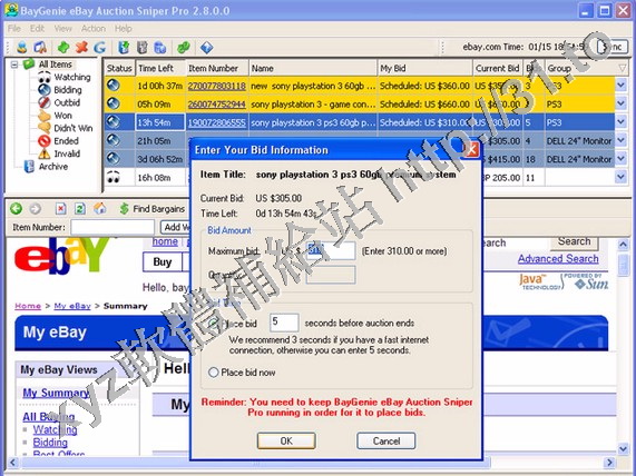 • BayGenie eBay Auction Sniper Pro v3.1.8.0 英文正式版(ebay 的輔助交易工具軟體)