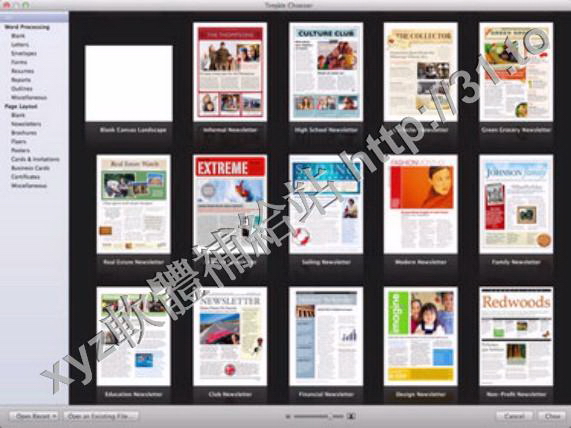 Pages starts with an enhanced Template Chooser that lets you skim