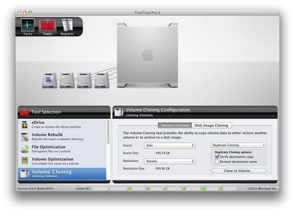 成交量除了測試的硬碟機的磁碟目錄重建,TechTool Pro還能夠執行完整的重建他們。這優化了這些