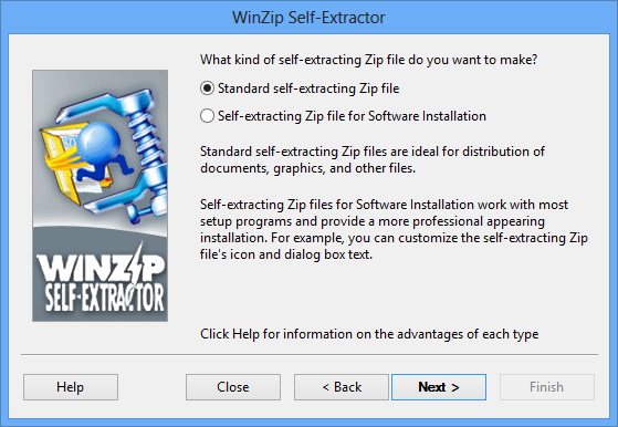 WinZip Self-Extractor creates Windows self-extracting Zip files.