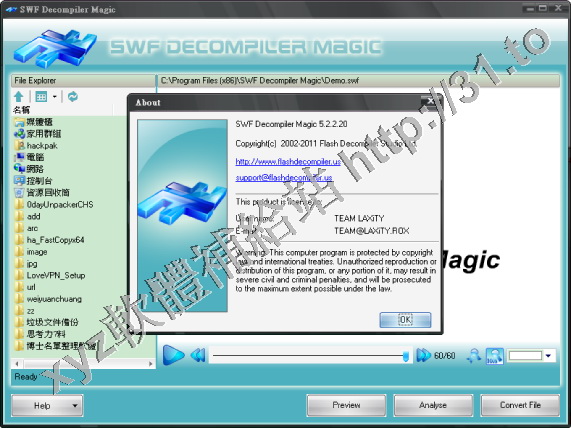 • SWF Decompiler Magic v5.2.1.2133 英文正式版(SWF格式文件和EXE格式之間進行轉換軟體)