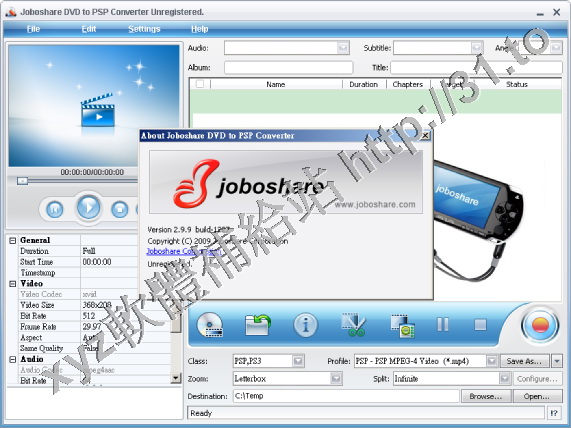 • Joboshare DVD to PSP Converter v2.9.9.1227 英文正式版(音視頻轉換軟體)