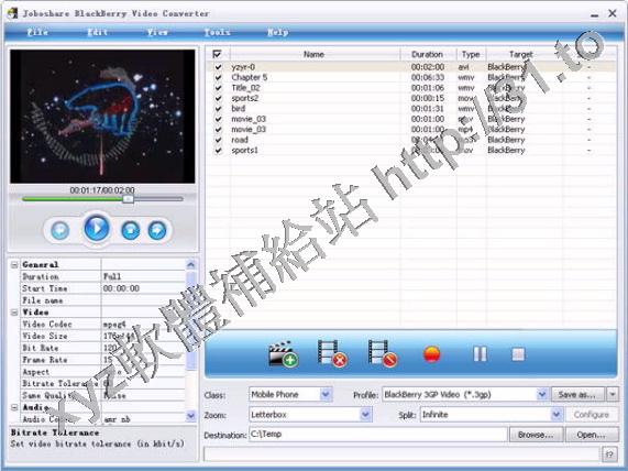 Joboshare BlackBerry Video Converter將簡直一切主流視(shiping)頻格式如DVD、
