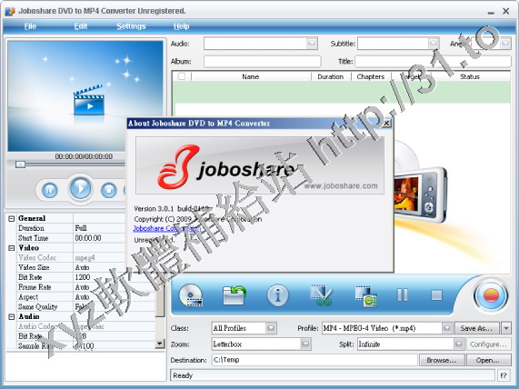 • Joboshare DVD to MP4 Converter v3.1.1.0606 英文正式版(視頻轉換軟體)