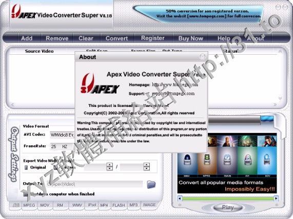 • Apex Video Converter Super v5.82 英文正式版(視頻格式轉換軟體)